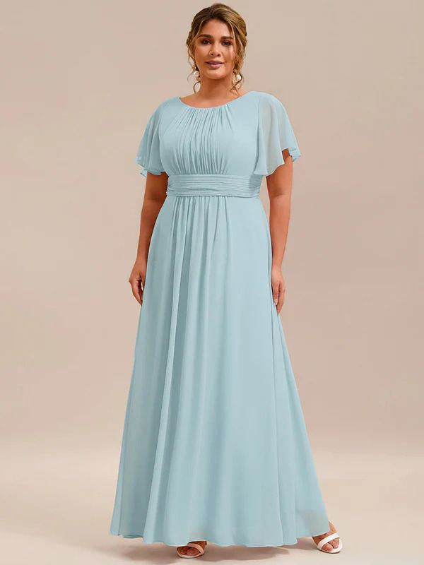 Svečana duga haljina koja prati liniju tela, sa kratkim lepršavim rukavima.