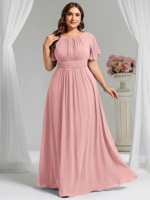 Svečana duga haljina koja prati liniju tela, sa kratkim lepršavim rukavima.