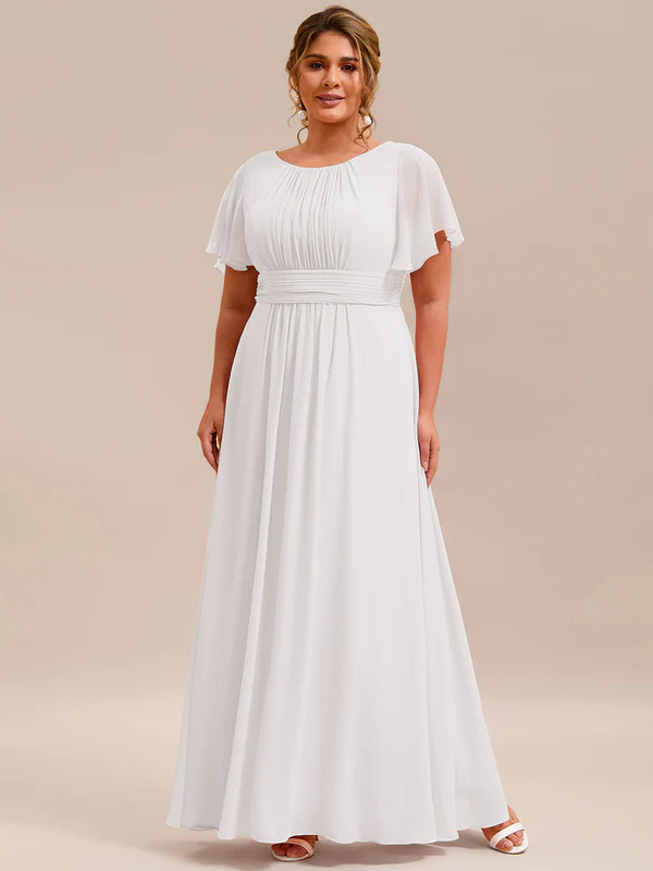 Svečana duga haljina koja prati liniju tela, sa kratkim lepršavim rukavima.