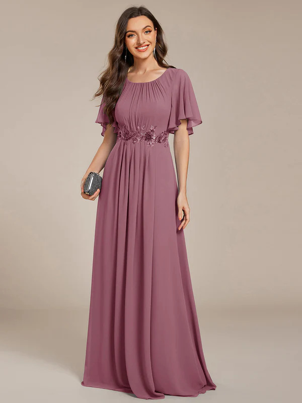 Haljina sa kratkim rukavima i zatvorenim leđima.