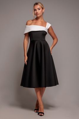 Midi haljina od scube sa belim gornjim delom.