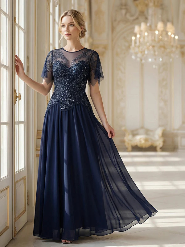 Raskošna duga haljina sa detaljima i kratkim rukavima od tila.